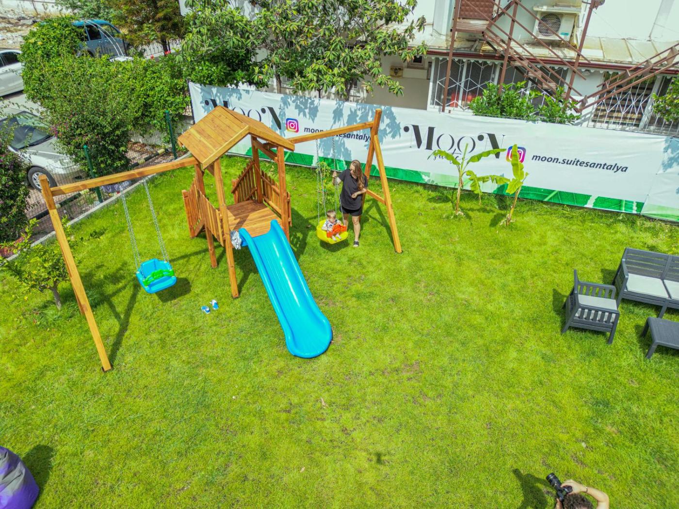 For guests with children, the aparthotel provides outdoor play equipment. Both a bicycle rental service and a car rental service are available at Moon Suites.