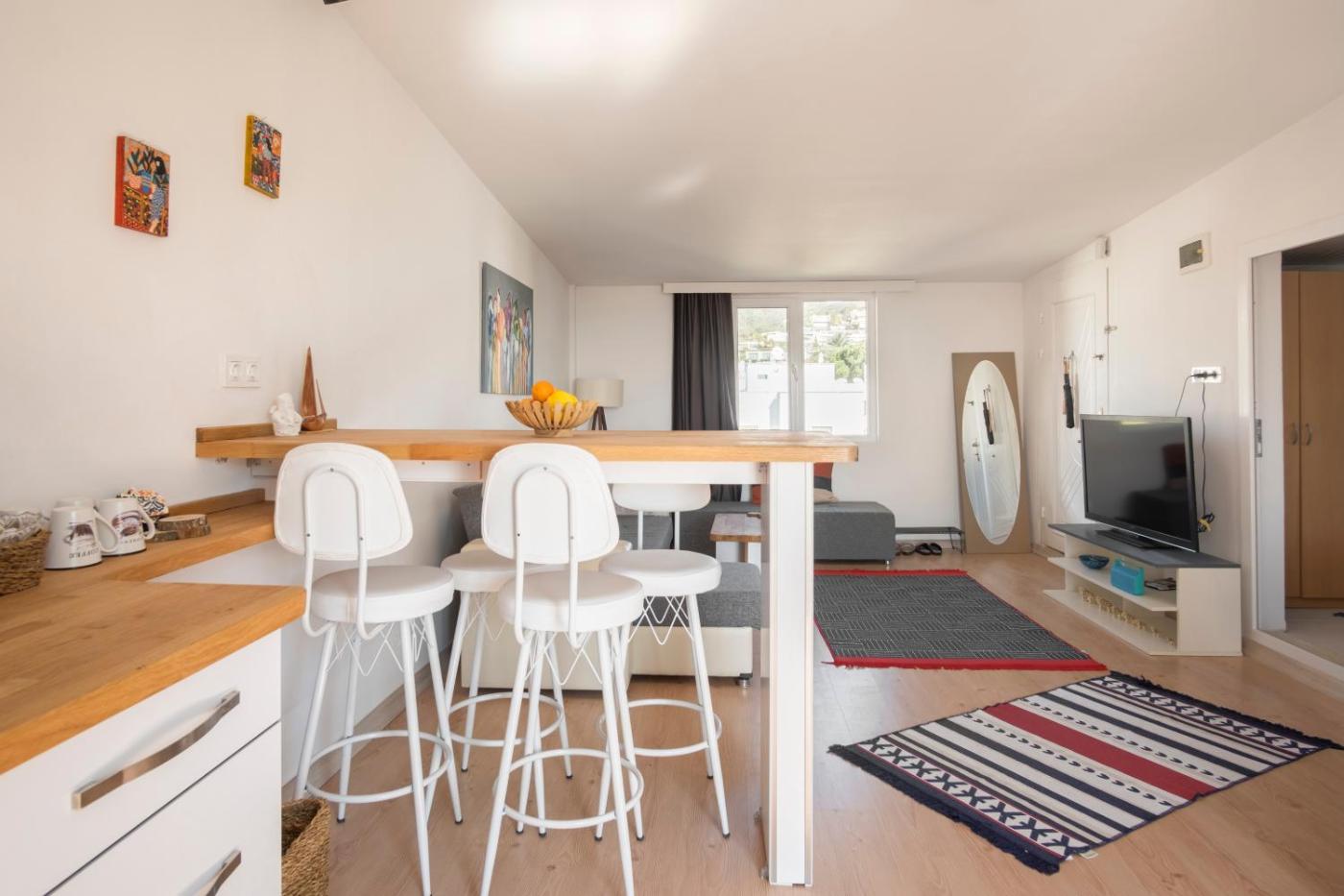 Set in Bodrum City and only 2 km from Akkan Beach, Central, Cozy, 15 Min Walk To The Beach, Fast Wi-Fi, Free Parking, 4ppl offers accommodation with mountain views, free WiFi and free private parking. This apartment provides air-conditioned accommodation with a balcony. The accommodation features a 24-hour front desk, luggage storage space and currency exchange for guests.