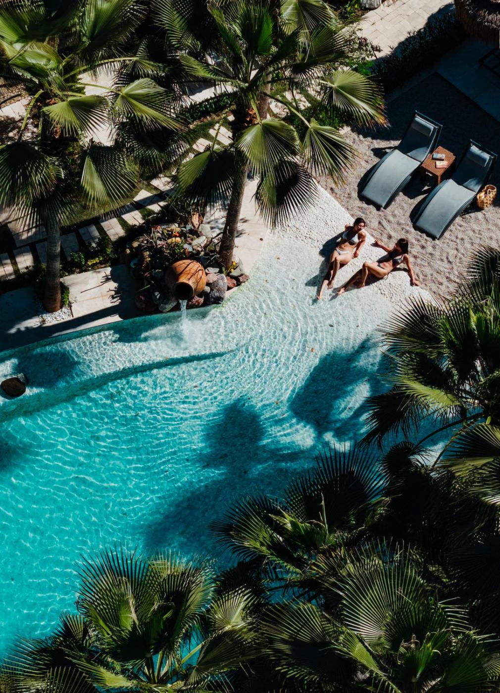 King Suite with Pool View. Boasting a private entrance, this air-conditioned suite features 1 living room, 1 separate bedroom and 1 bathroom with a walk-in shower and a bidet. This wheelchair accessible suite has a pool with a view, a seating area and a roll-in shower. The unit has 2 beds.