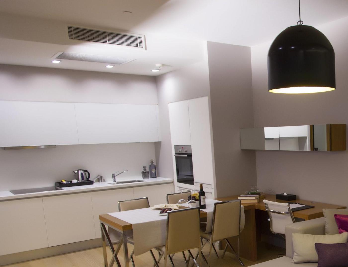 Corner Premium Two-Bedroom Apartment. This apartment features a full kitchen, living room and two bedrooms. It has air conditioning, oven, No-Frost fridge, dishwasher, desk, electric kettle and flat-screen TV. Guests can enjoy their dinner on the dinner table. A Blu-Ray player, free WiFi, wireless telephone and ironing facilities are provided. Private bathroom comes with hairdryer, bathrobe, slippers and free toiletries. ;