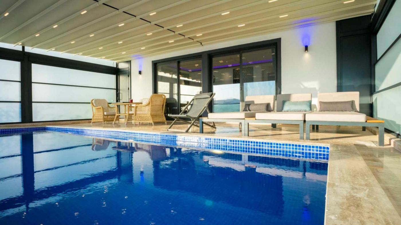 Situated in Kalkan, Kalkan 3 Bedroom Villa - 7756 features accommodation with a heated pool and sea views. The air-conditioned accommodation is 1.6 km from Kalkan Public Beach. Featuring free WiFi throughout the property, the non-smoking villa features a sauna.