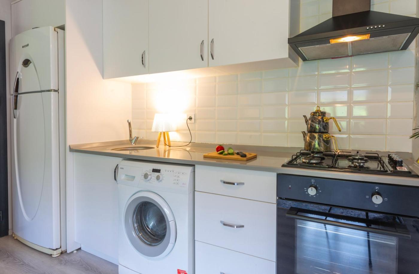 Studio with Garden View. This spacious suite features 1 living room, 1 separate bedroom and 1 bathroom with a shower and free toiletries. In the well-equipped kitchen, guests will find a stovetop, a refrigerator, a dishwasher and kitchenware. The air-conditioned suite features a flat-screen TV with satellite channels, a washing machine, soundproof walls, a seating area as well as garden views. The unit has 2 beds. ;